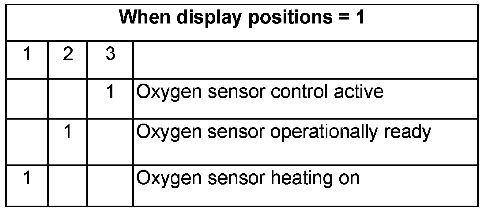 - Check status of oxygen sensor control behind Three Way Catalytic (TWC) Converter (display field 2): Specification: 1 1 0