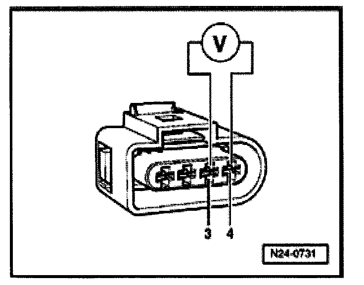 - Use adapter cables from VAG1594 to connect multimeter to terminals 3 + 4 (Motronic ECM connector) for voltage measurement.