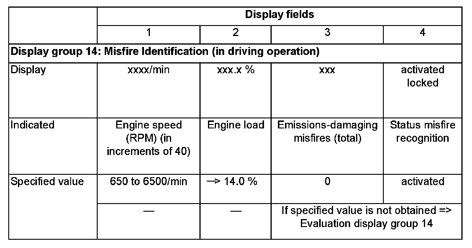 - Also check the status of misfire recognition in display field 4.