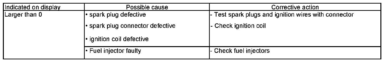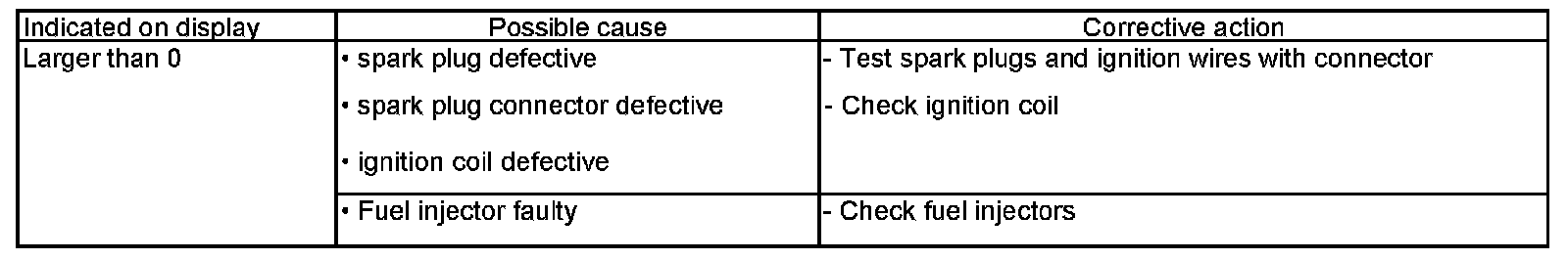 - Check misfires in display fields 1-3.