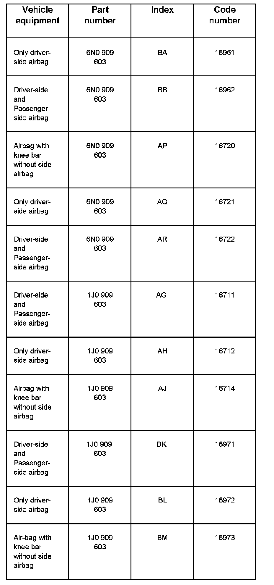 6N0 909603 AR AIRBAG VW2 V00 ->