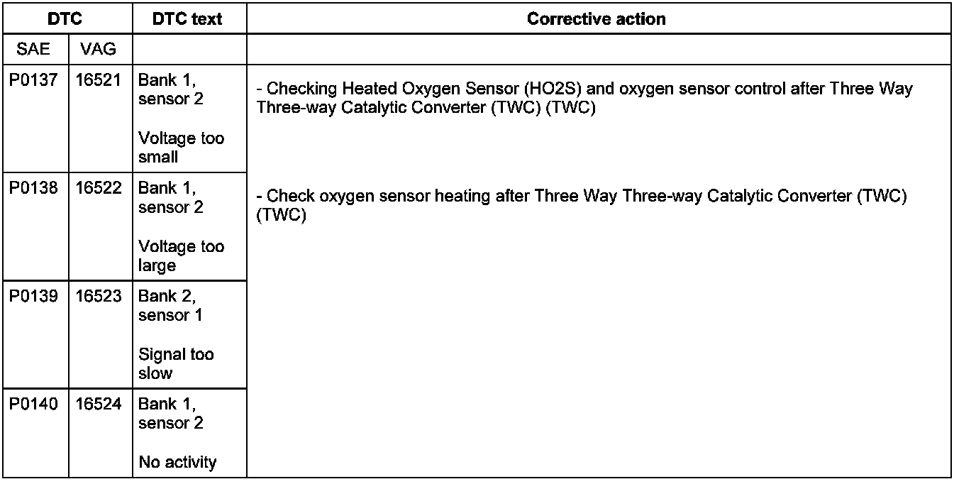 DTC P0137 - P0141: