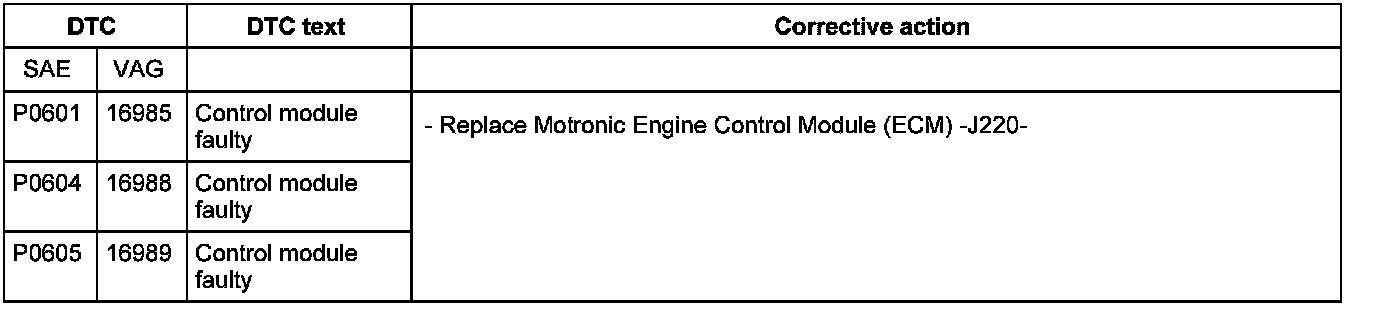 DTC P0601 - P0605: