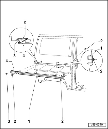 NOTE: To remove guide rail: remove sliding door, if necessary, molded trim on right rear side panel