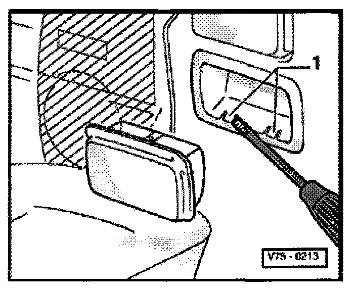 Pry retaining lugs -1- over edge of molded trim recess with screwdriver.