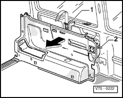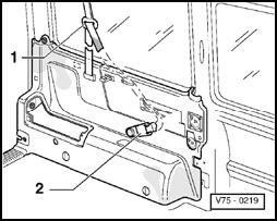- Remove seat belt retractor - 1 - and, if necessary, disconnect speaker connector - 2 -.