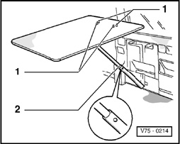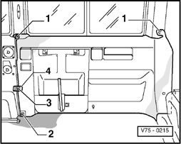 - Remove recessed screw - 3 -, carefully pry out belt guide with locking panel - 4 -.
