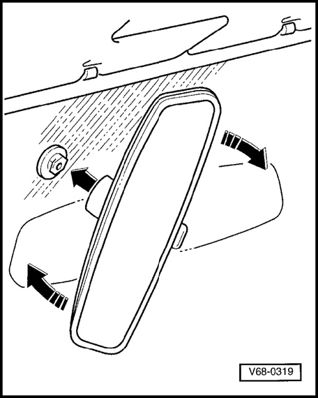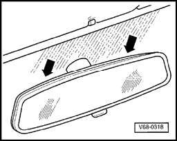 - Press interior rear view mirror downward at an angle, off retaining plate (spring clip in mirror base).