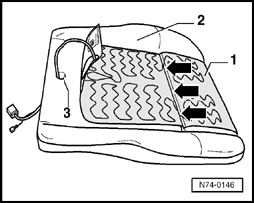 - During installation, material - 1 - of heating element must be connected with seat cover and seat frame in bead (arrows).