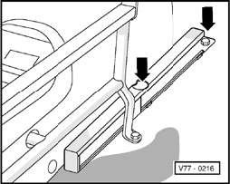 Remove guide rail securing bolts - arrows -.