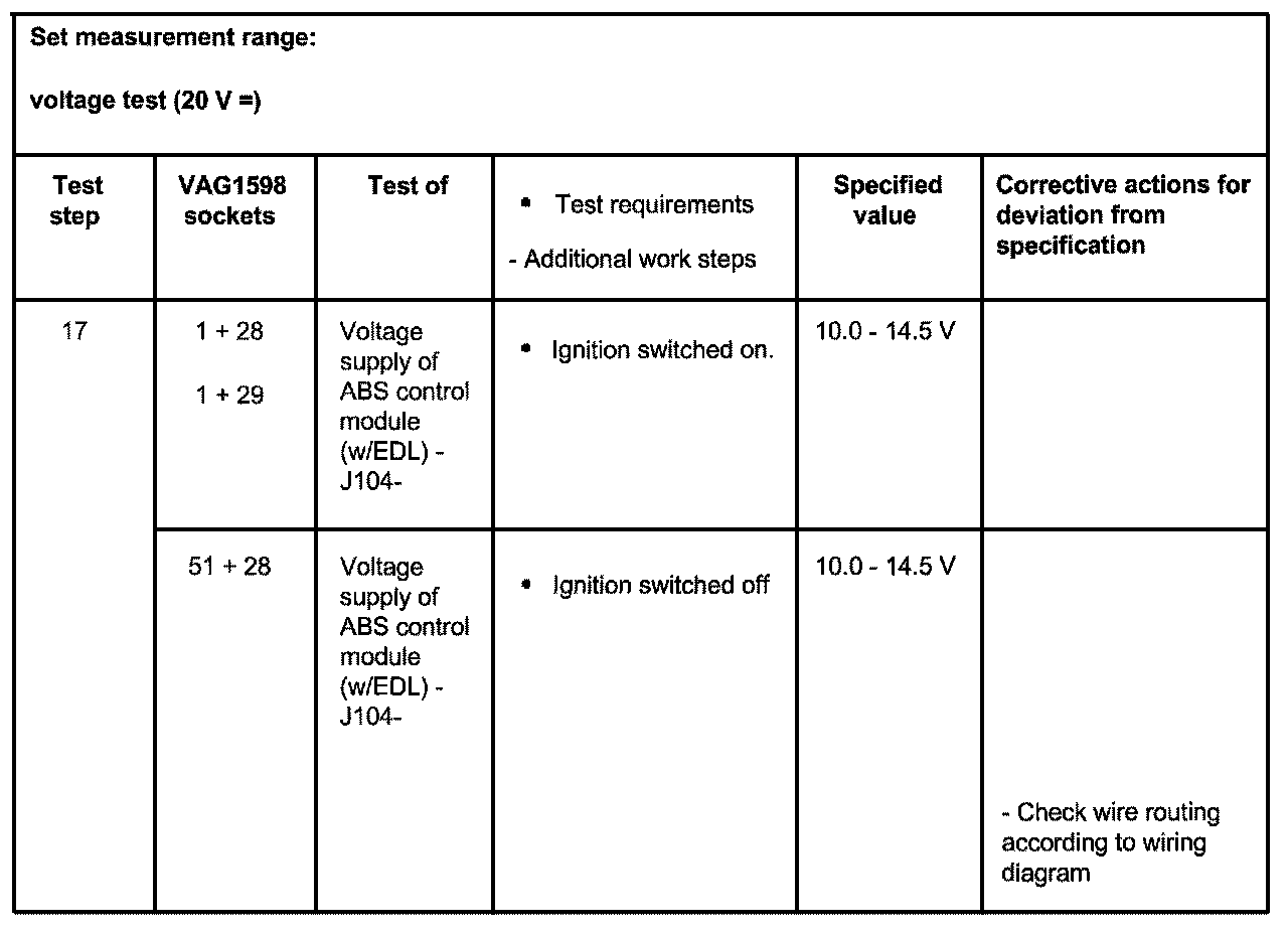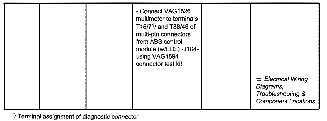 ^ The socket designations of the VAG1598/20 adapter are identical to the terminal designations for the ABS control module (w/EDL) -J104- in the wiring diagram.