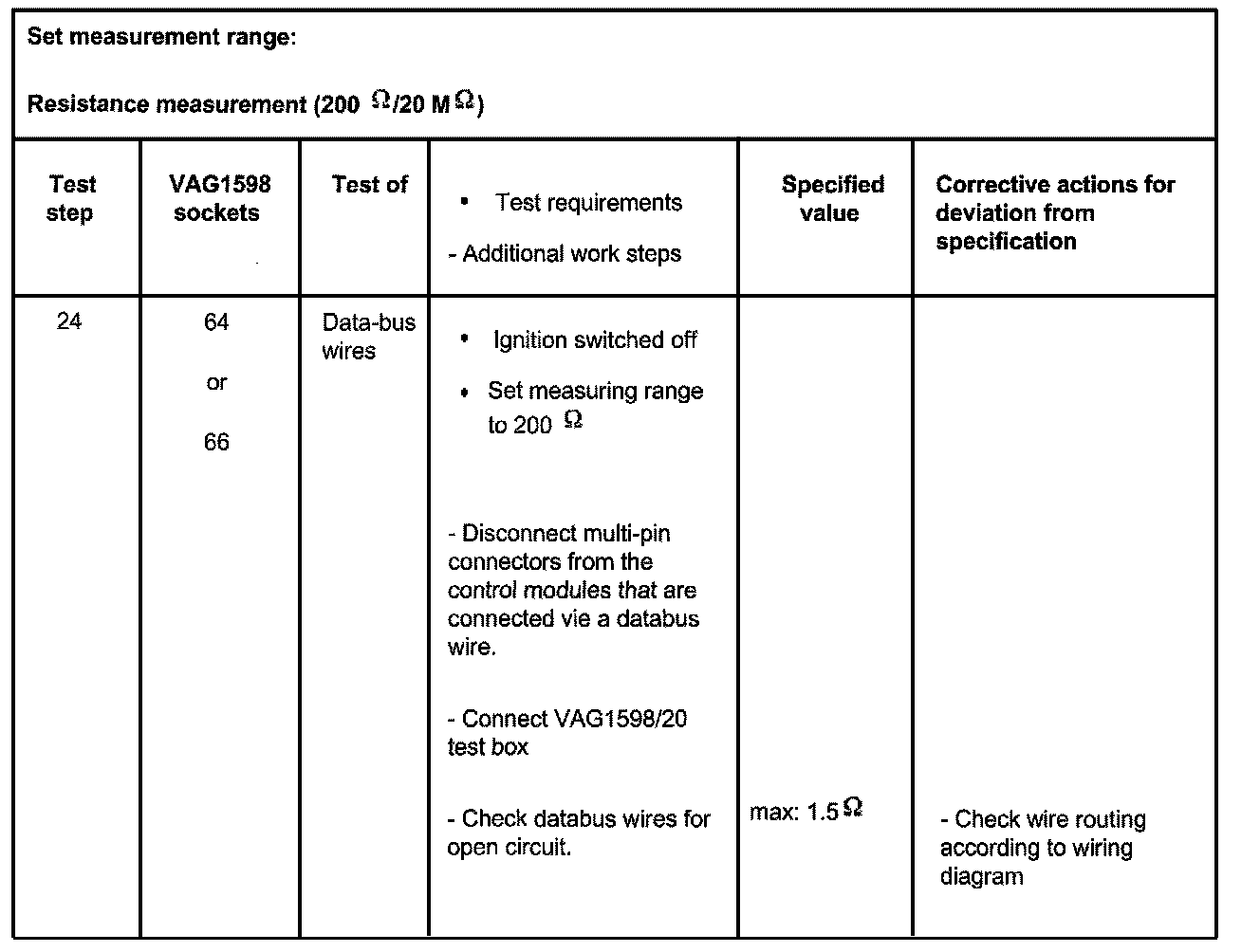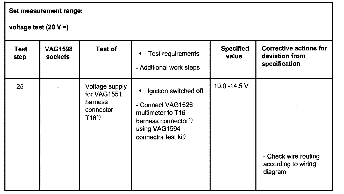 ^ Use the VAG1594A connector kit for continuity tests (bridging leads).