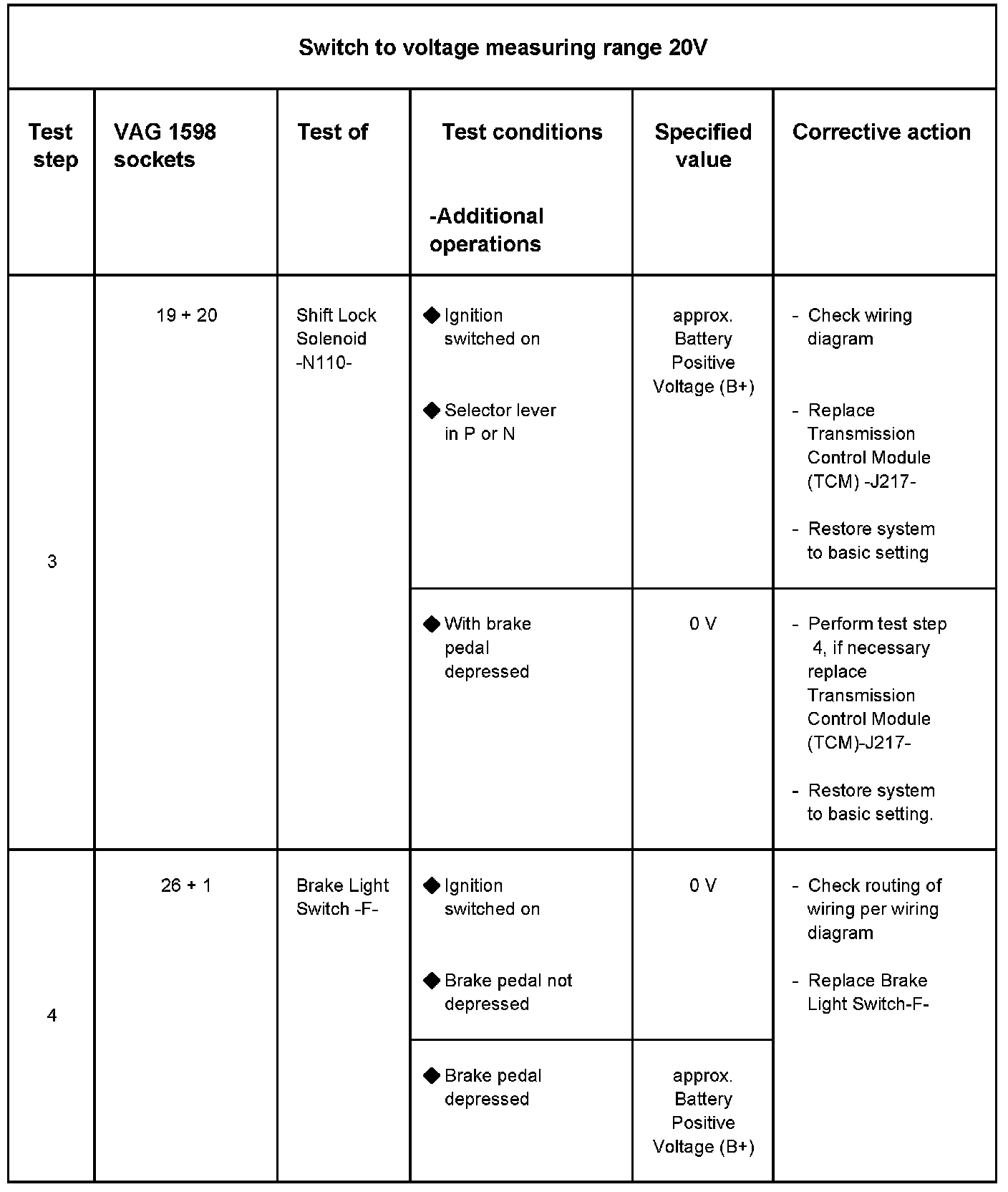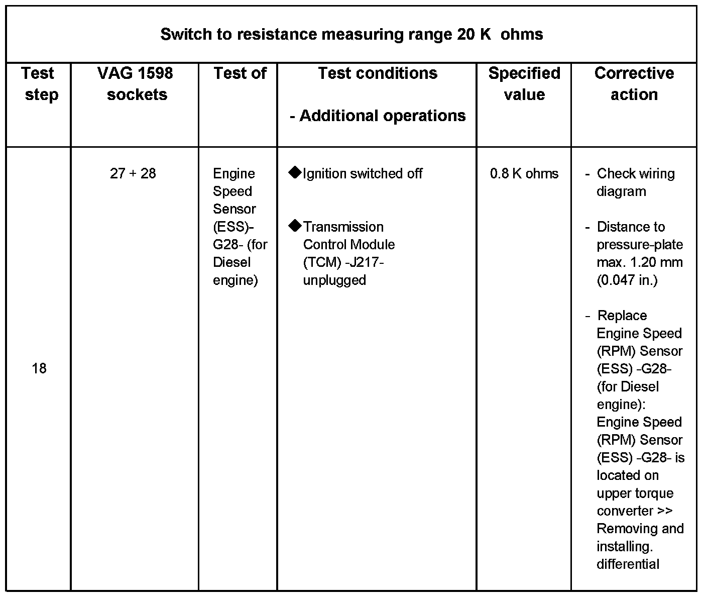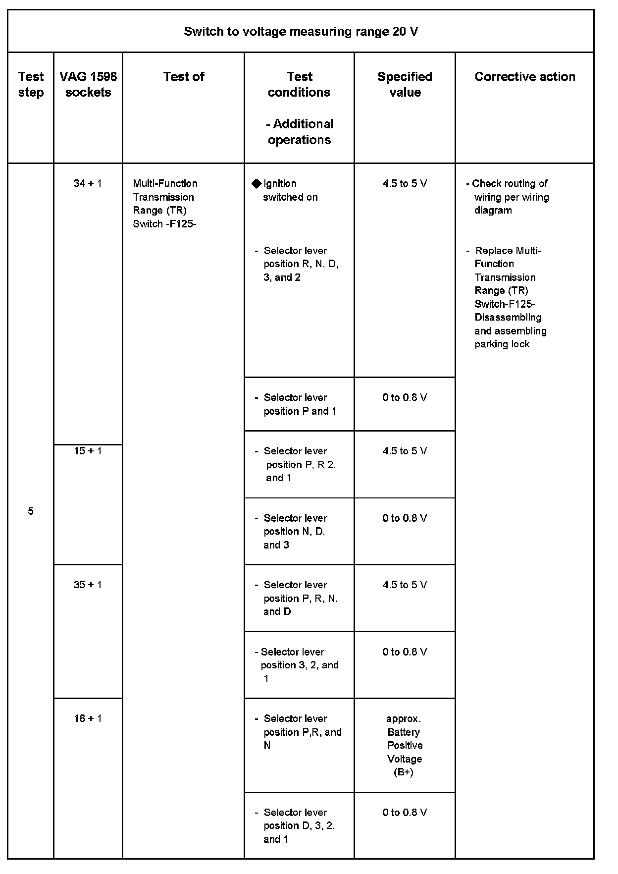 Terminal assignment for 38-pin Transmission Control Module (TCM) -J217- connector (also sockets on VAG 1598 Test Box)