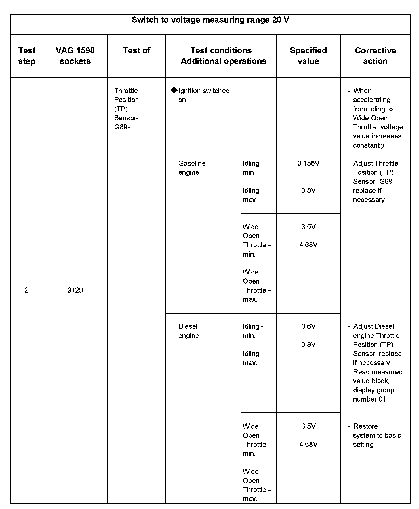 10 - Throttle Position (TP) Sensor -G69- + 5 Volt