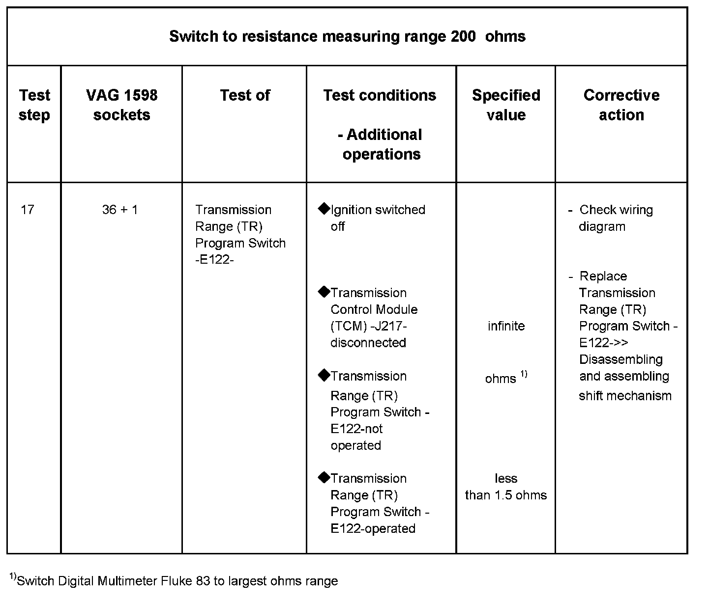 36 - Transmission Range (TR) Program Switch -E122- or electronic shift program