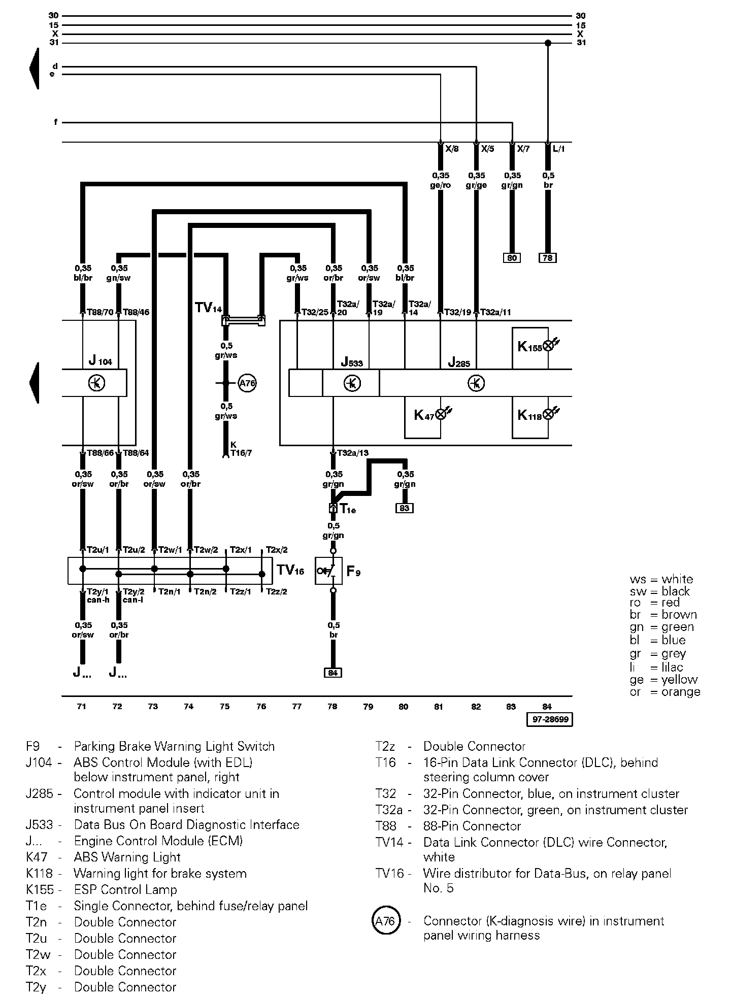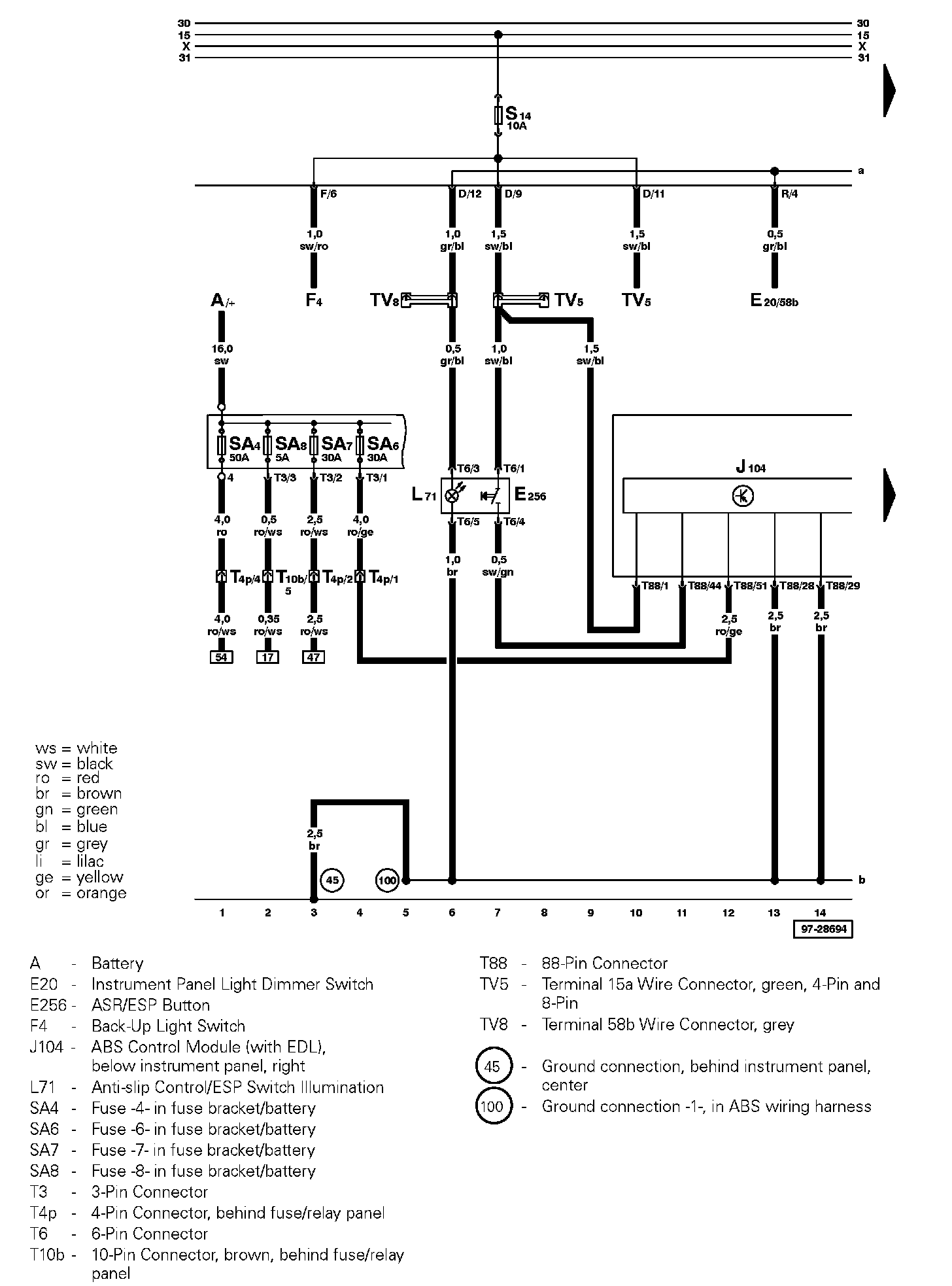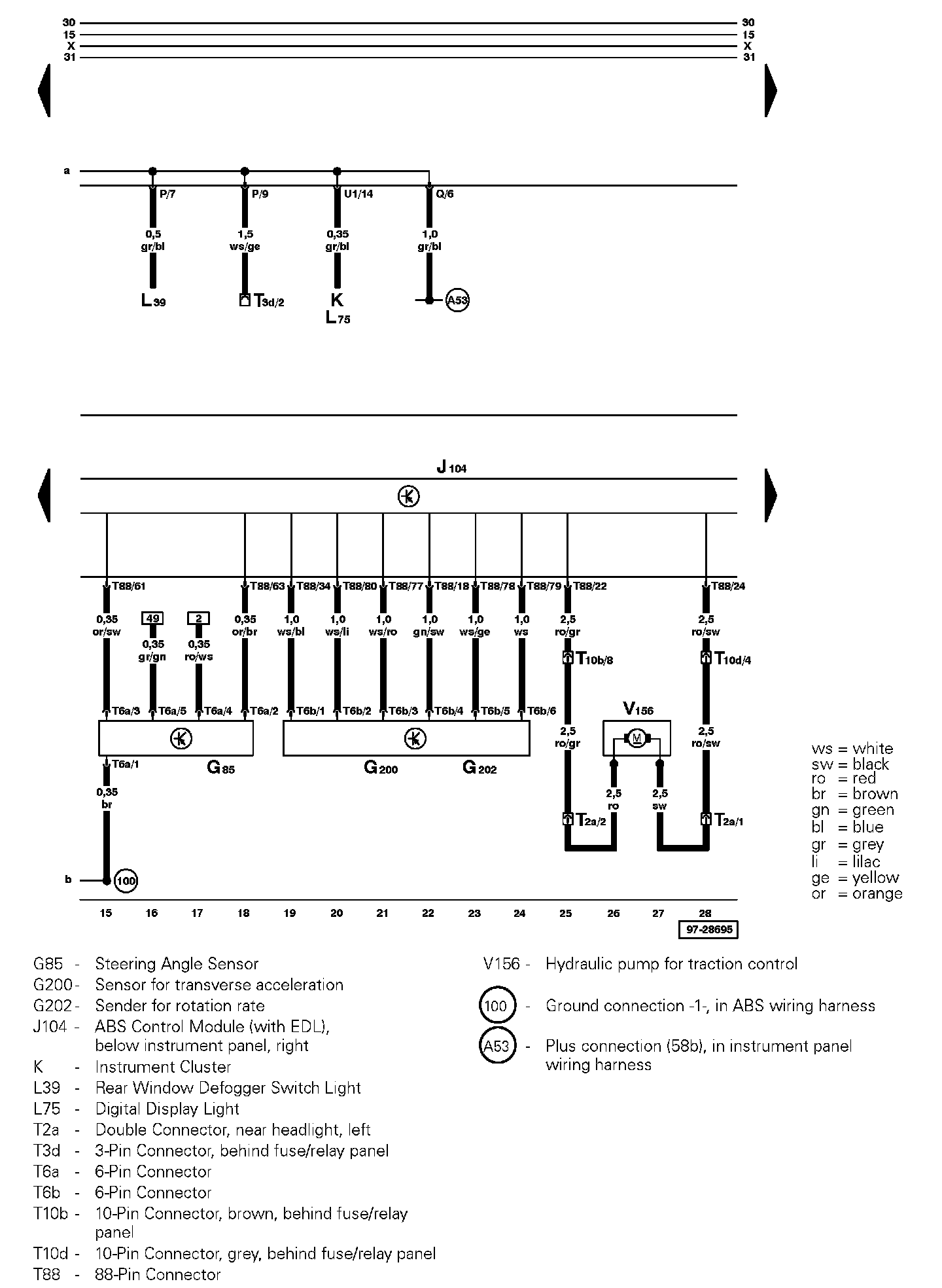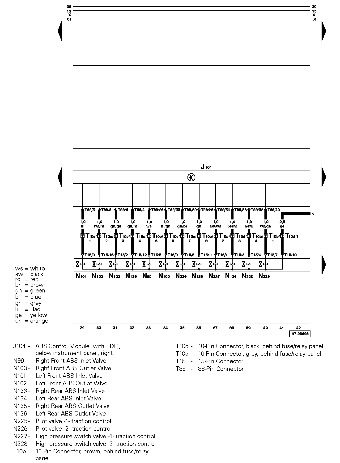 Anti-lock brake system (ABS) with electronic differential lock(EDL), anti-slip control (ASC) and electronic stability program (ESP) - From December 2000