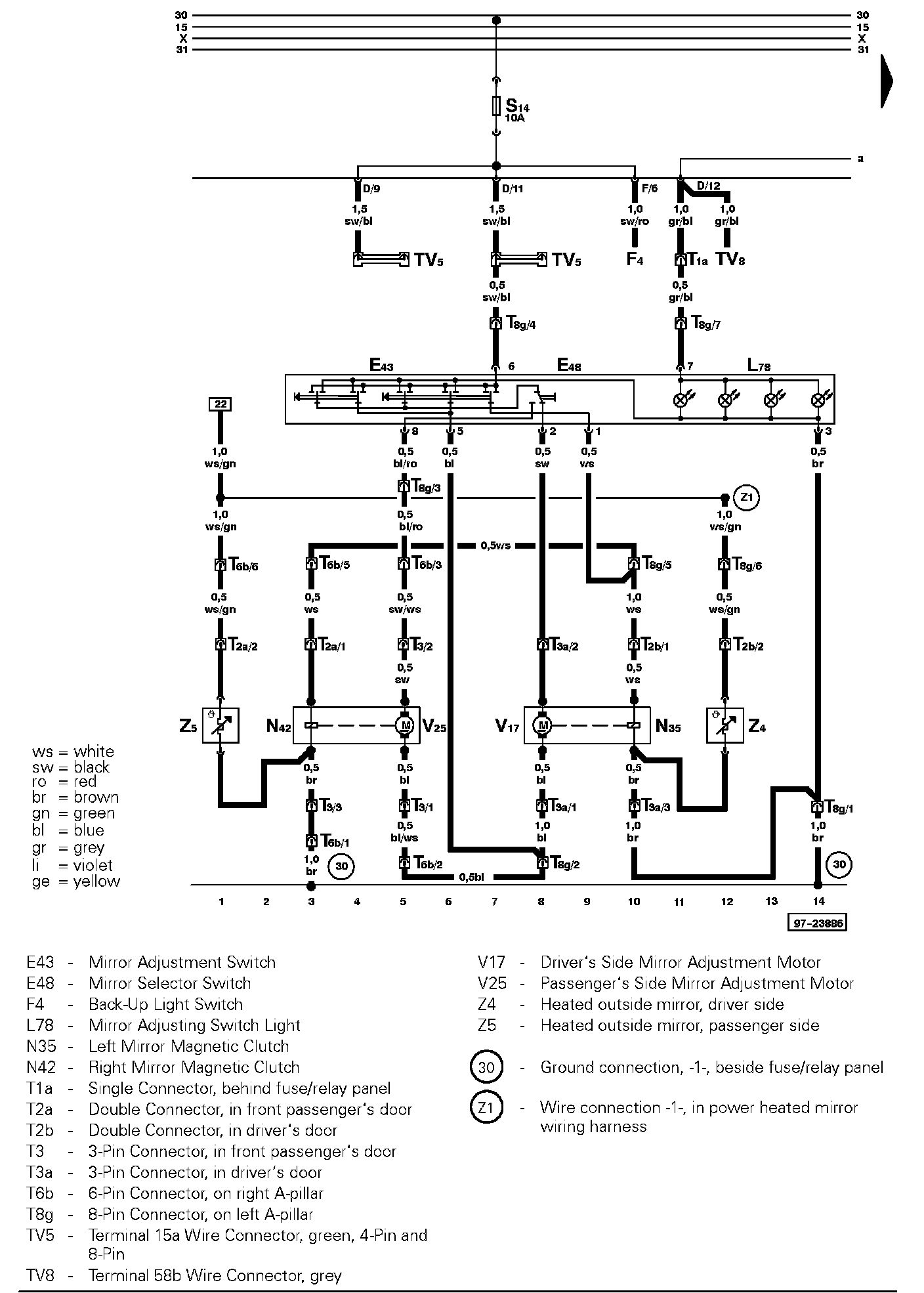 Heated power mirrors, from September 1998