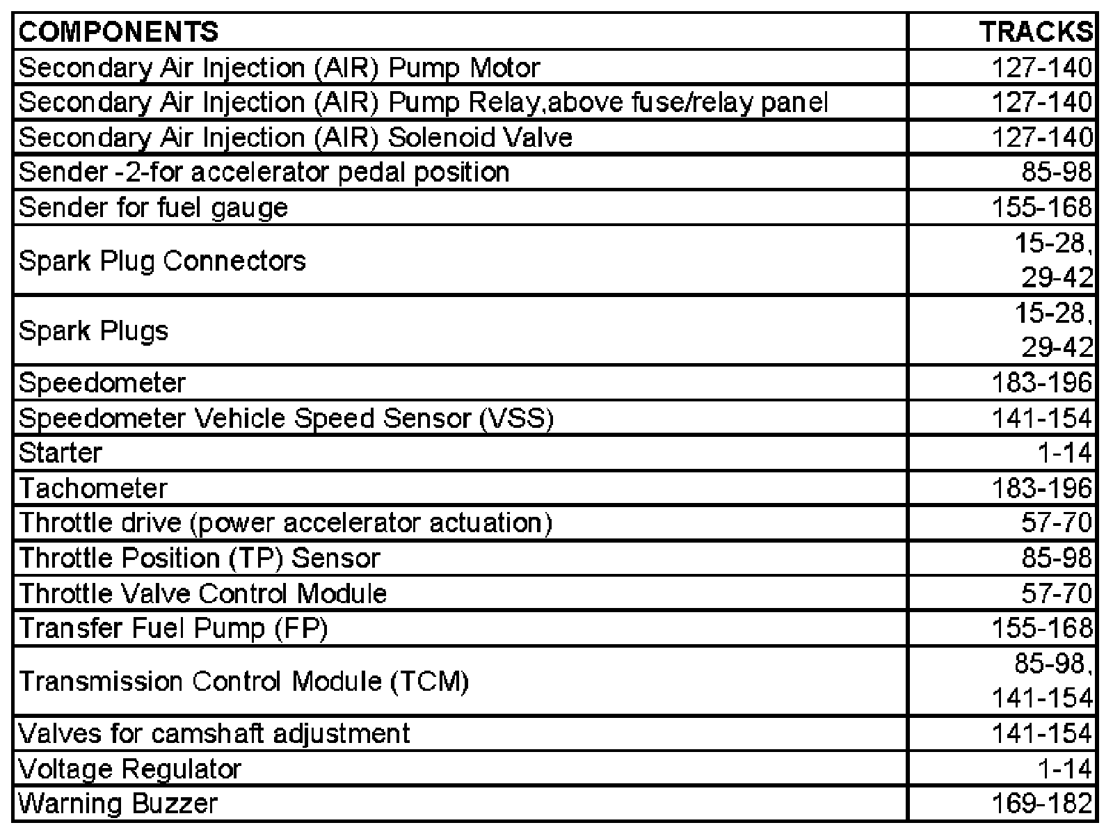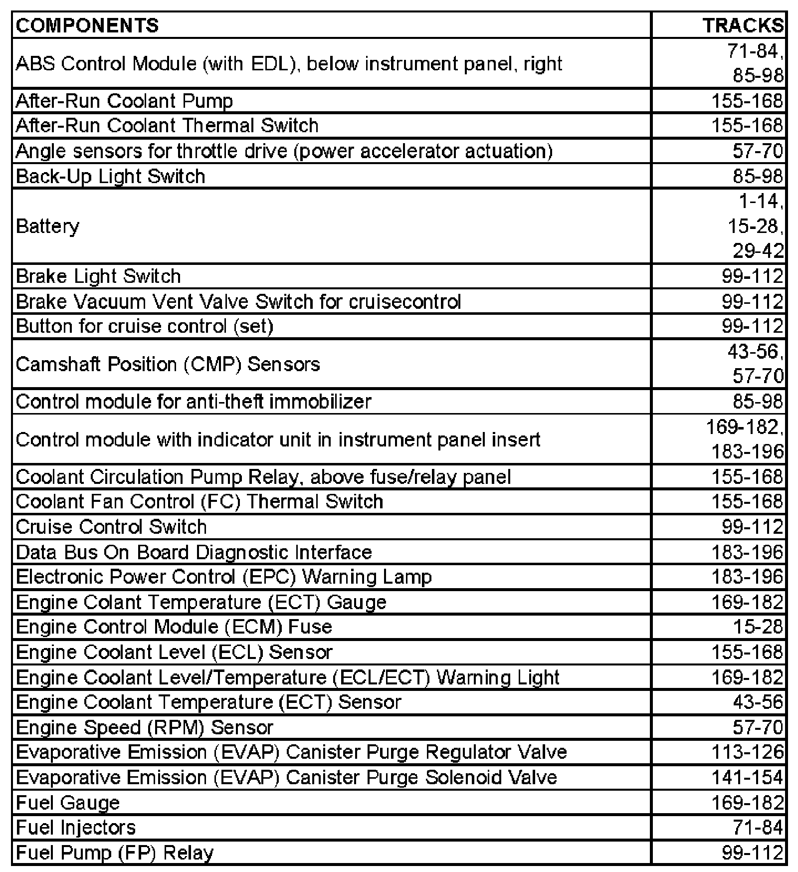 Diagram Index A - F: