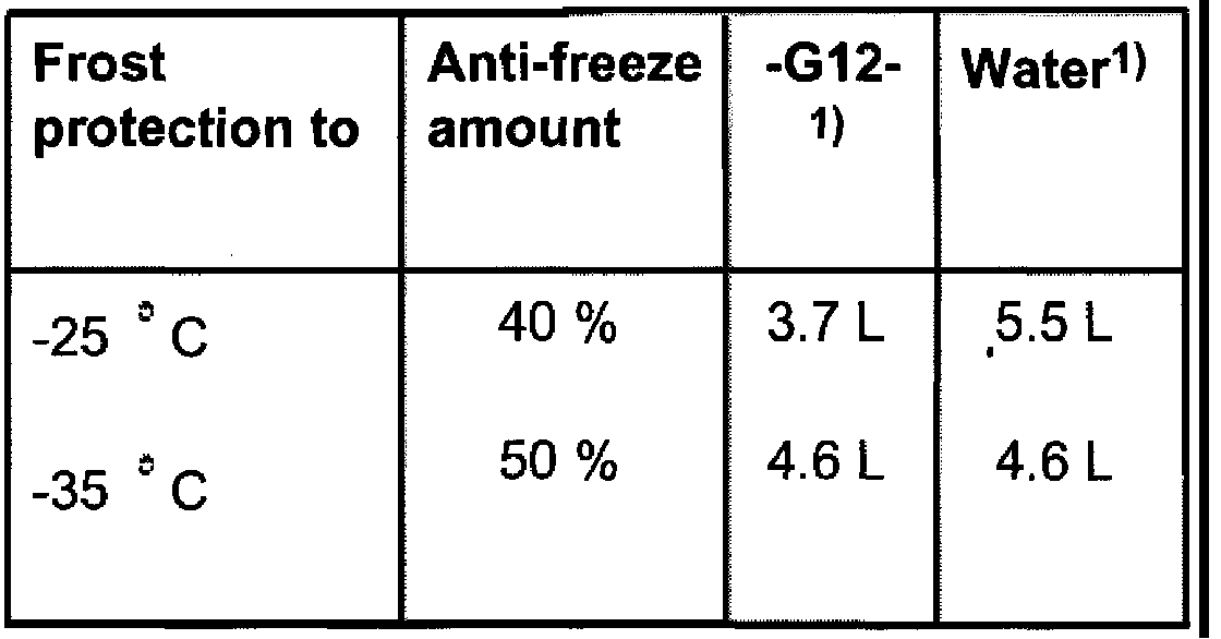 - If for climatic reasons greater frost protection is required, the amount of G12 can be increased , but only up to 60% (frost protection to about -40° C), otherwise frost protection and cooling effectivness will be reduced.