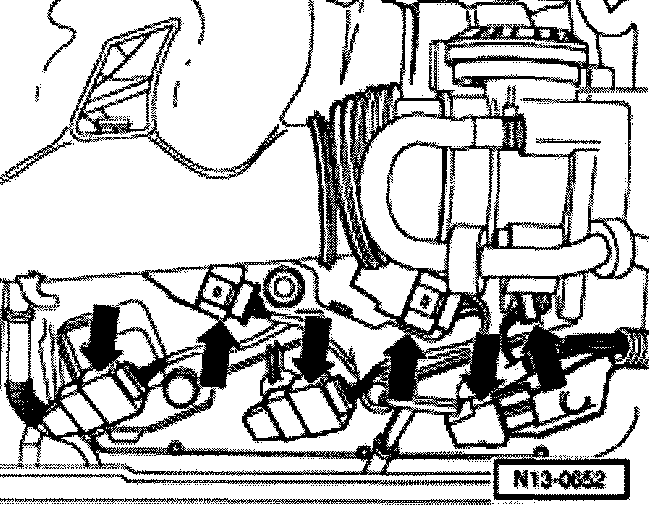 - First tighten intake manifold with lower part of intake manifold at cylinder head, then tighten bolts at rear supports.