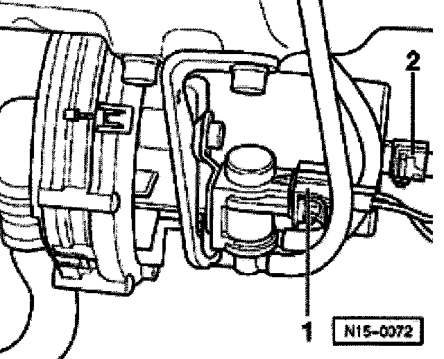 - Disconnect connector from Secondary Air Injection (AIR) solenoid valve -N112- -1- and Secondary Air Injection (AIR) pump motor -V101- -2-.