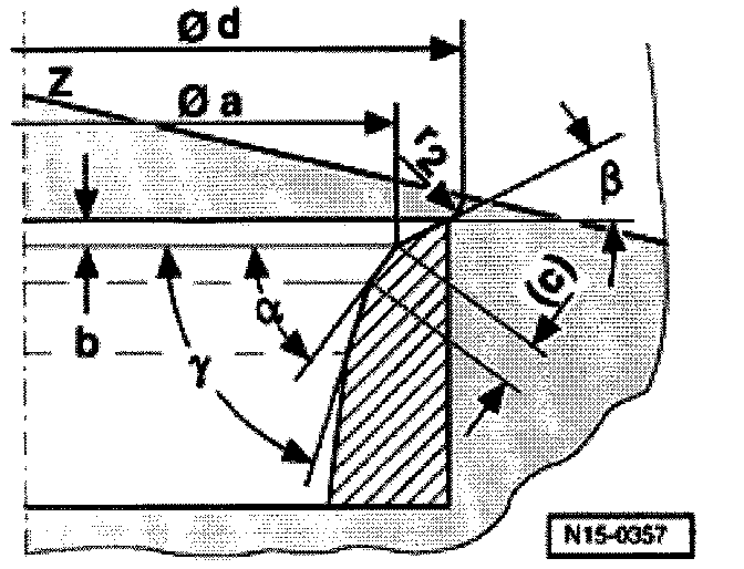 - Calculate maximum allowable refacing dimension using measured distance -a- and minimum dimension.