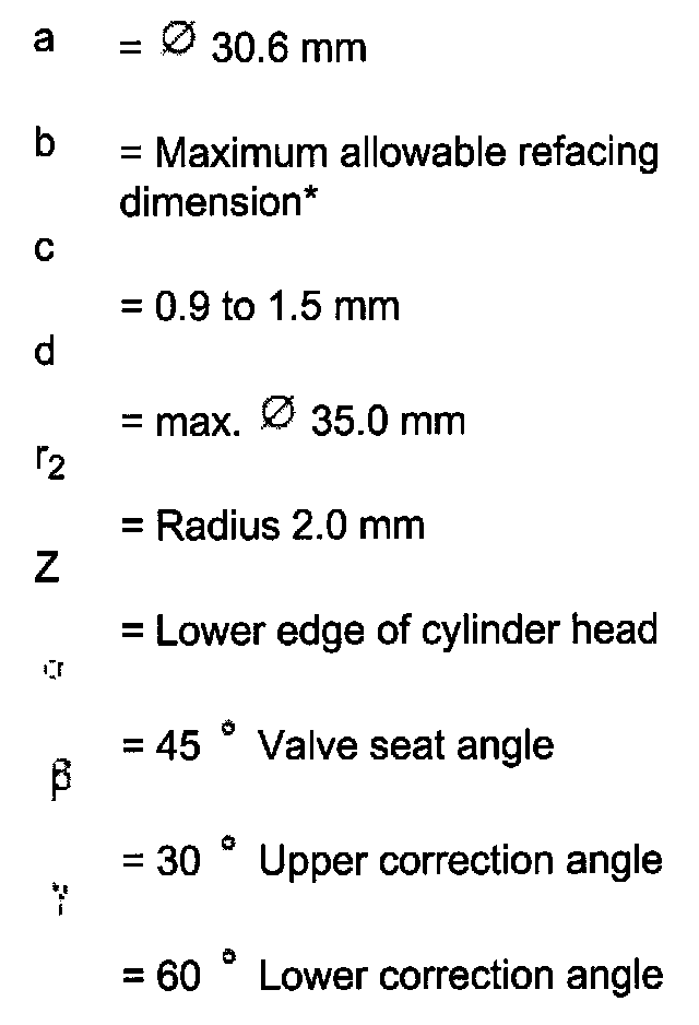 Maximum allowable refacing dimension is represented in illustrations for refacing valve seats as dimension "b".