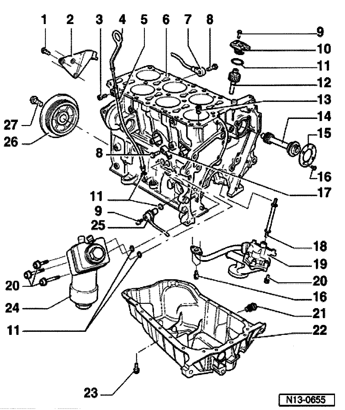 27. Bolt: tighten to 100 Nm + 1/4 turn (90 °)