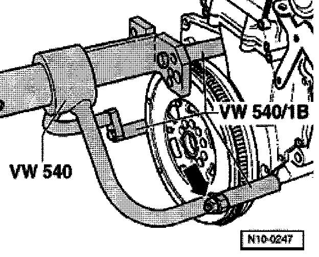 - Bolt engine/transmission VW 540 holding fixture to cylinder block with three pieces from VW540/1 B holding fixture and VW540/1 B spacers. Use a standard bolt M12 x 160 with toughness 8.8. for securing at right bottom (arrow).