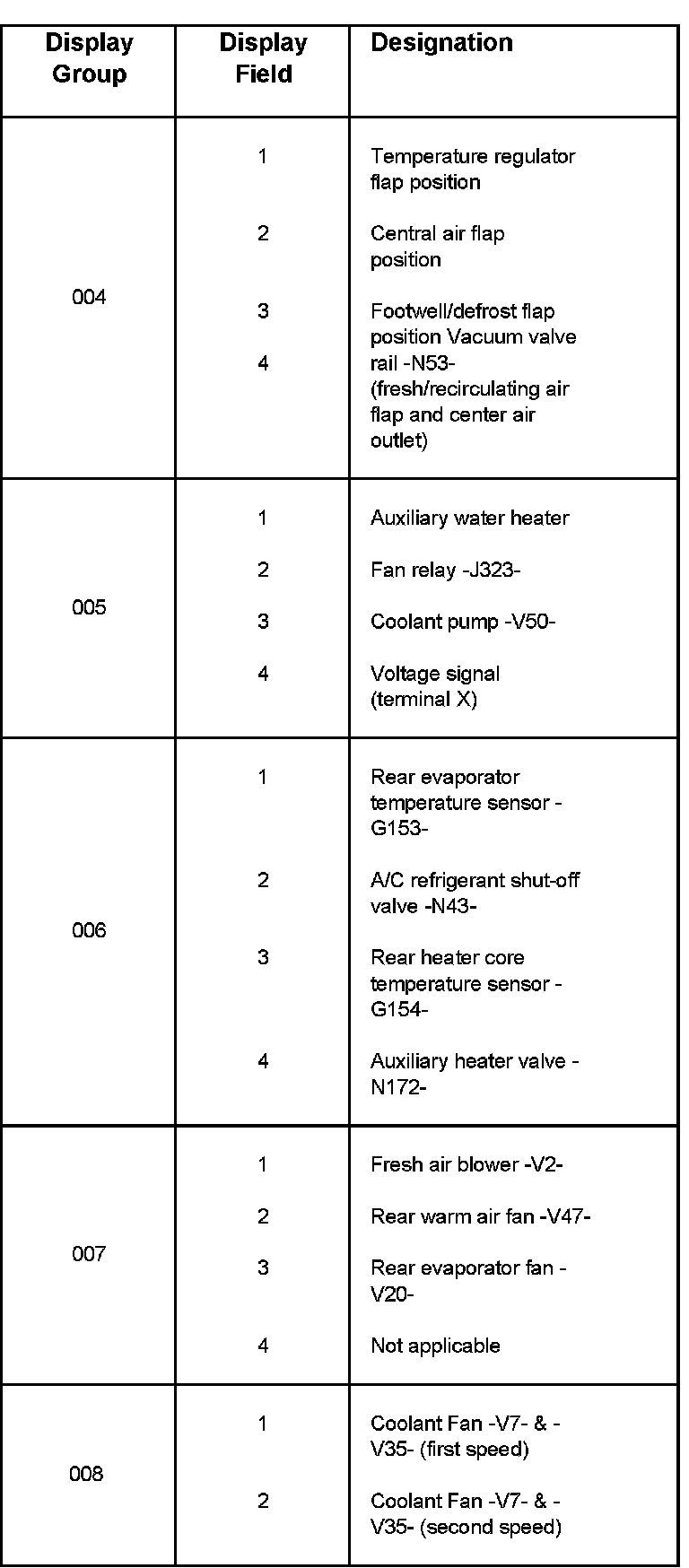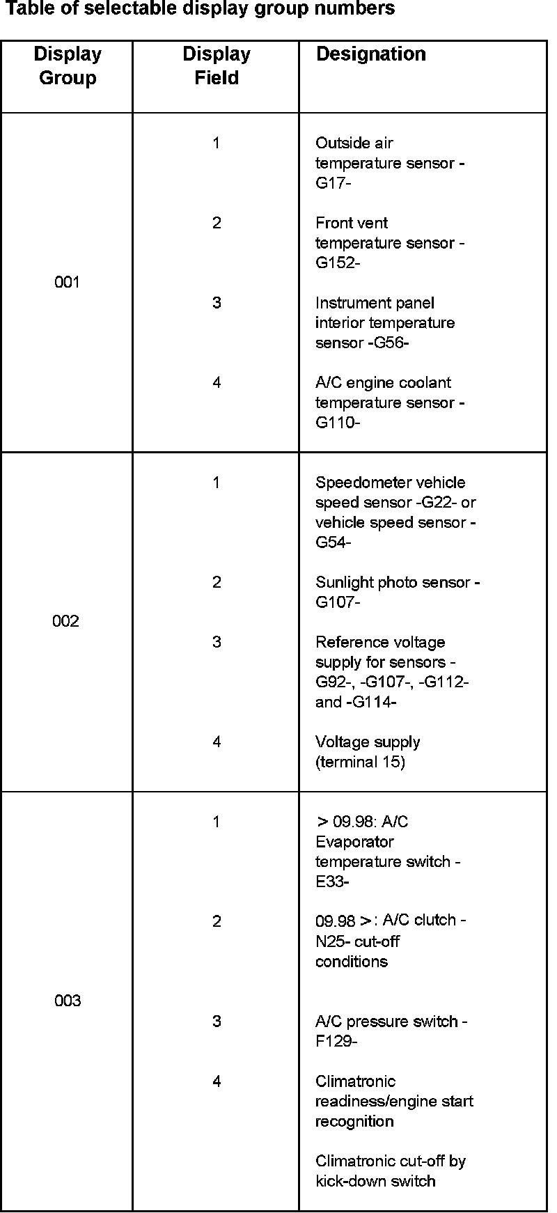- During the function "Read Measuring Value Block" all Climatronic functions and automatic regulation take place.