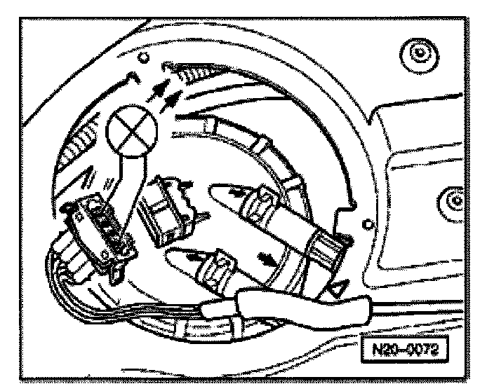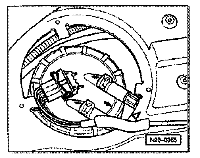- Connect VAG1527B voltage tester to outer terminals of connector using adapter cables from VAG1594A connector test kit.