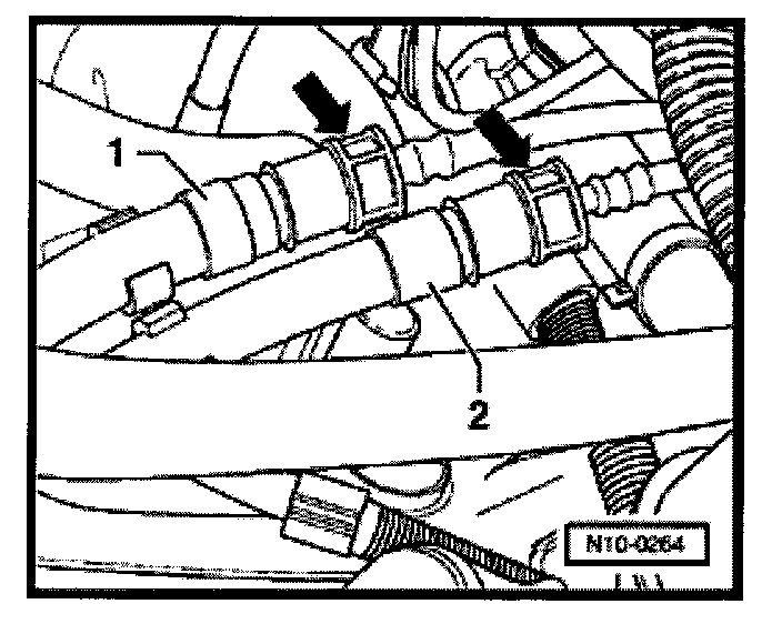 - Disconnect supply line -2- (with white marking) and catch escaping fuel using a rag.