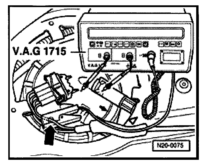 - Connect VAG 1715 multimeter with electrical current probe to blue/red wire of wiring harness.