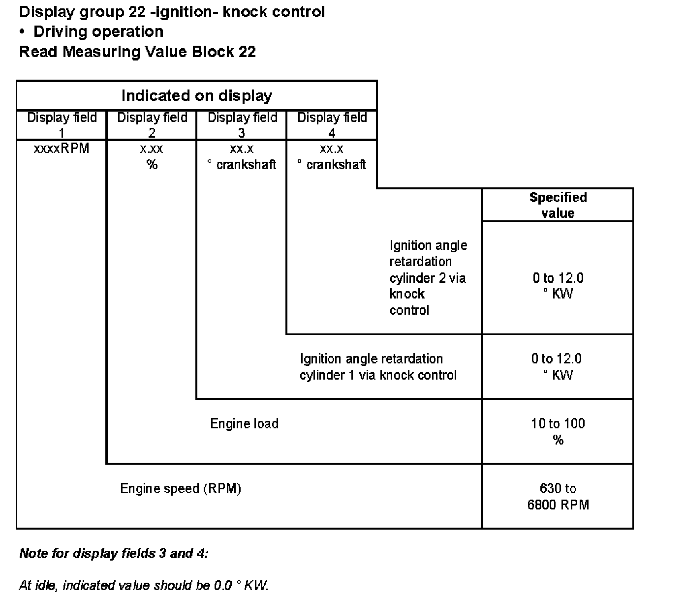 Evaluation, display groups 22 to 24, display fields 3 and 4 - ignition angle retardation