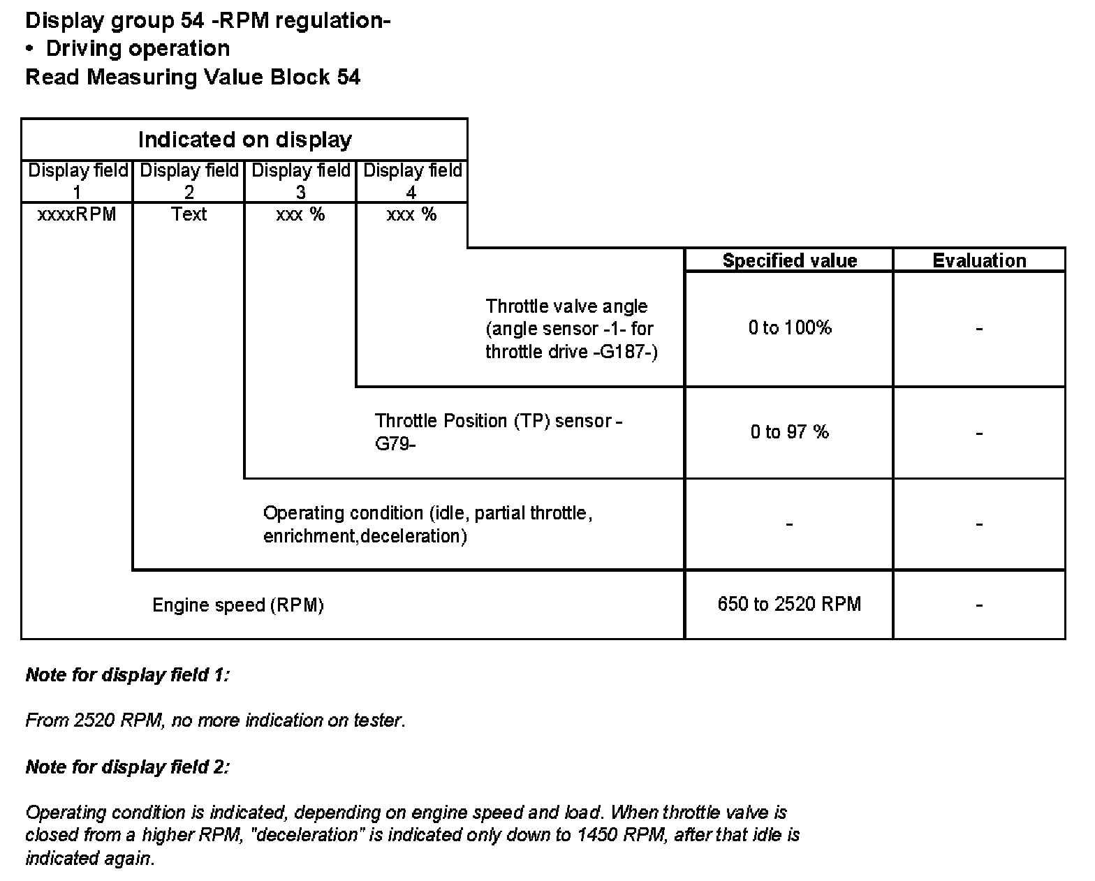 Display group 61 -RPM regulation- e-gas system