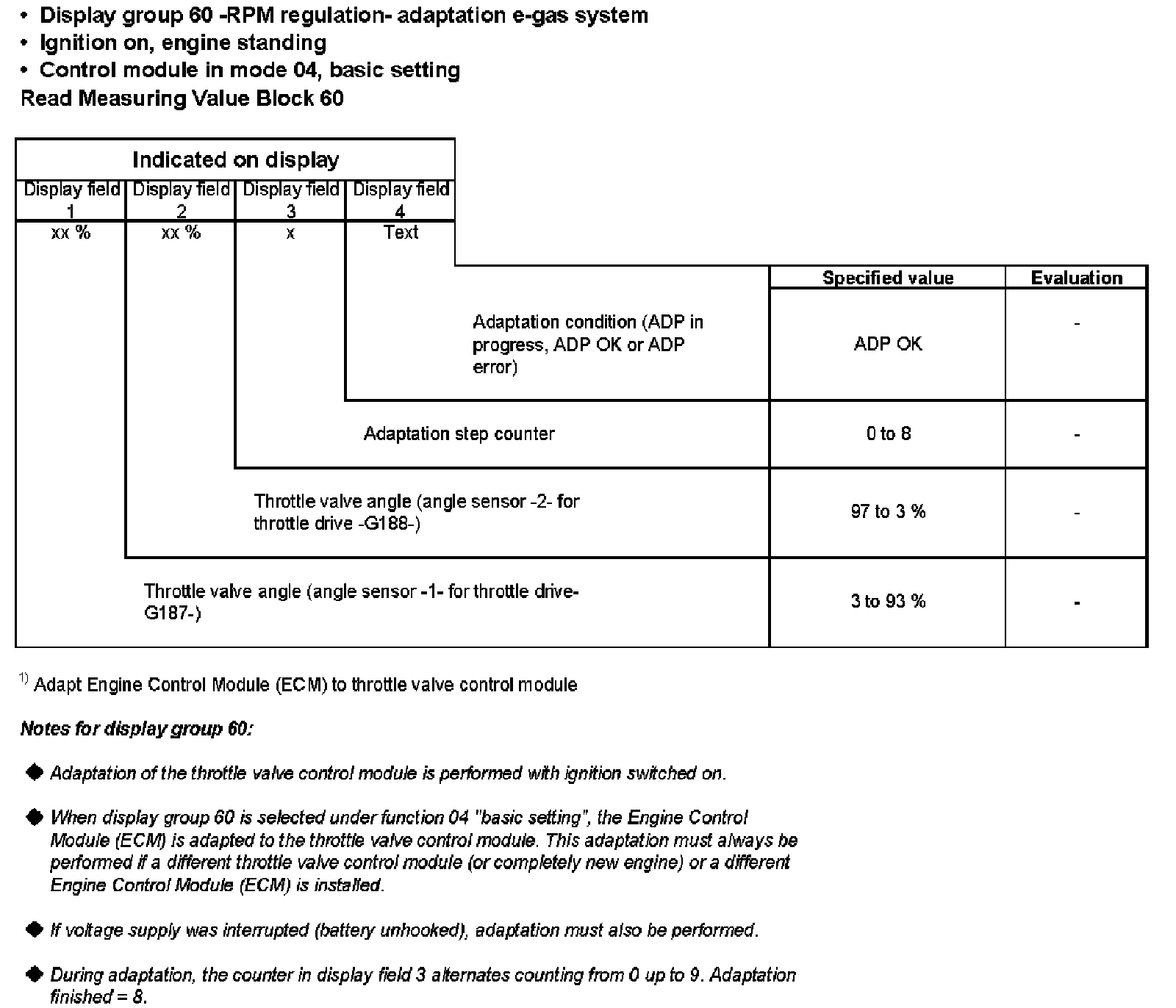 Display group 60 -RPM regulation- adaptation e-gas system