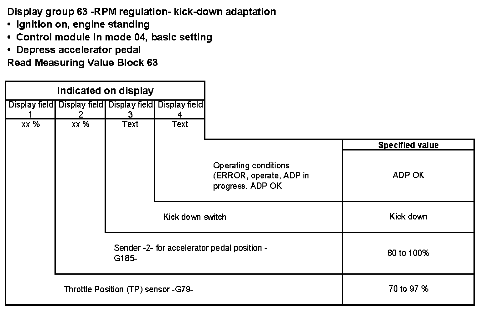 Display group 63 -RPM regulation- kick down adaptation
