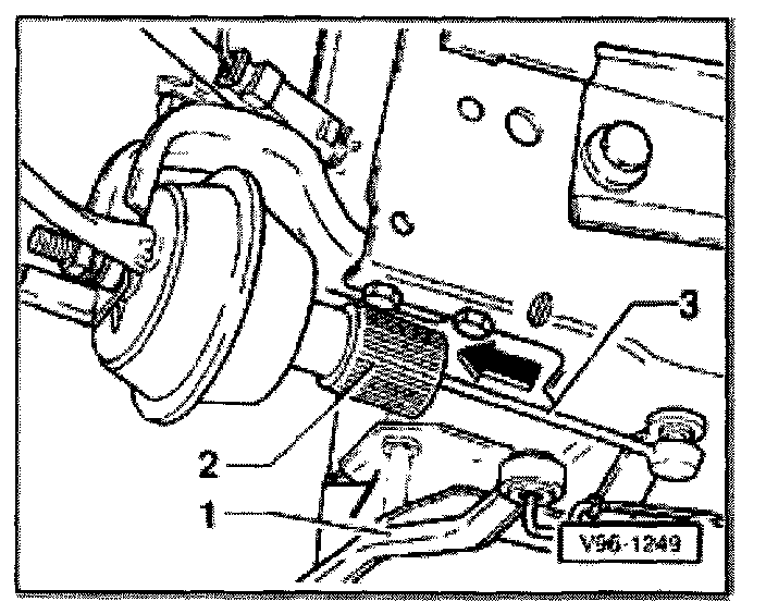 - Pull adjusting sleeve -2- together with pull rod -3- in direction of arrow until resistance is felt.