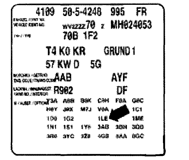 Placement of M-Number (PR No.) on Vehicle Data Plate (Arrow)