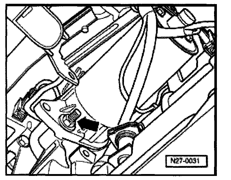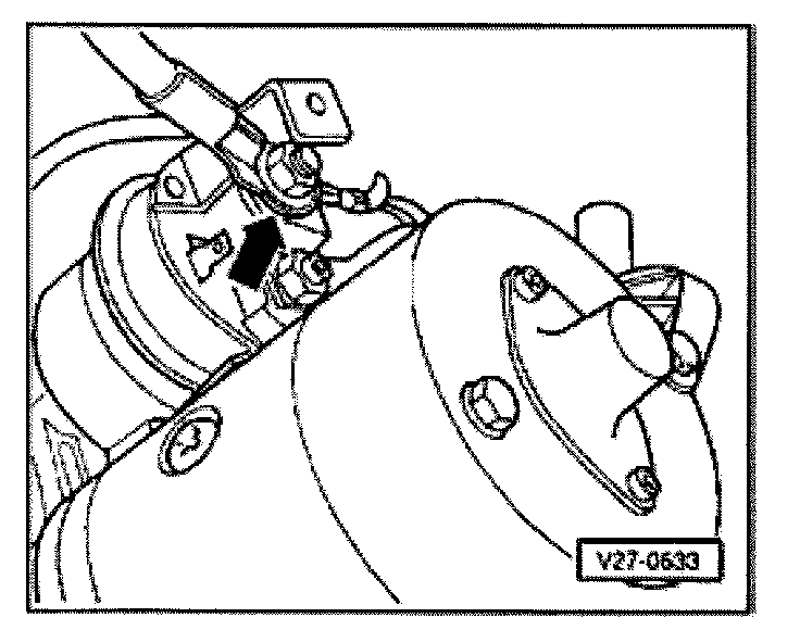 - Remove hex nut -arrow- (13 Nm) and remove terminal connector/wiring from solenoid.