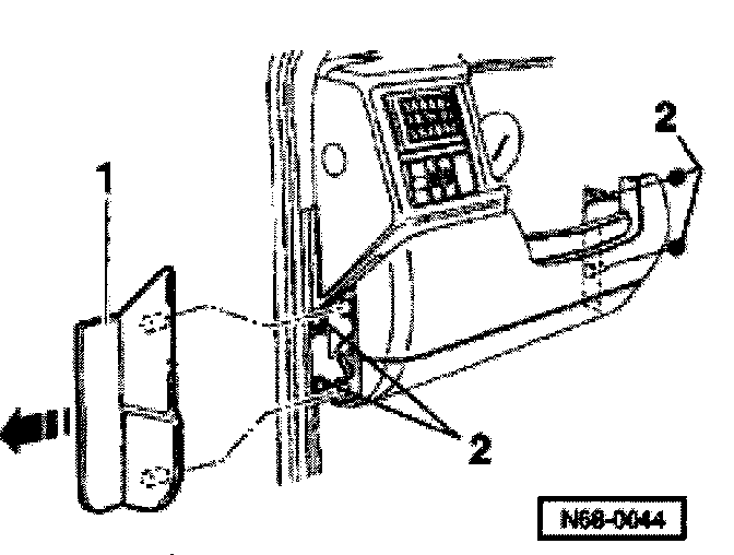 ^ Pry off trim -1- from left side.