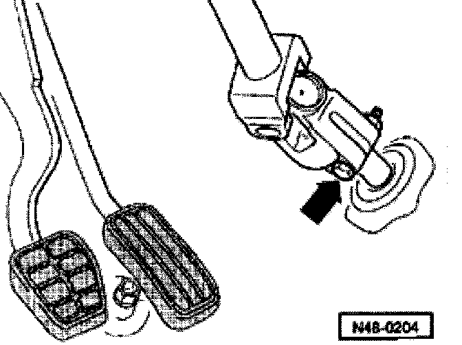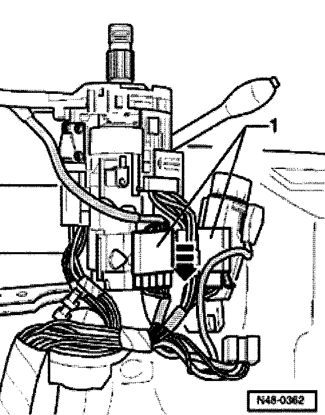 ^ Disconnect connector -1- from steering column by pulling in direction of arrow.