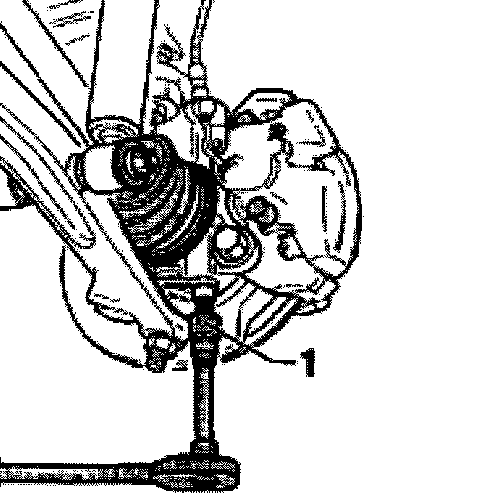 ^ Loosen hex bolt for drive axle/wheel hub when vehicle is standing on its wheels.