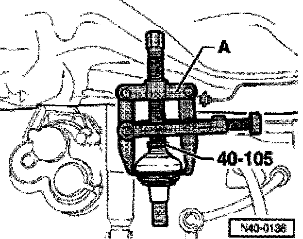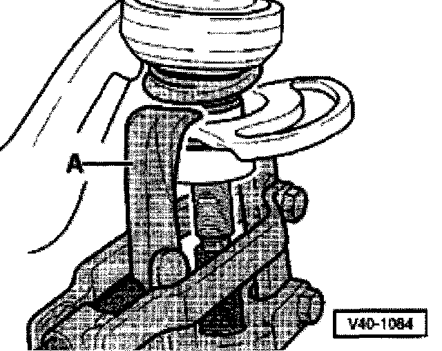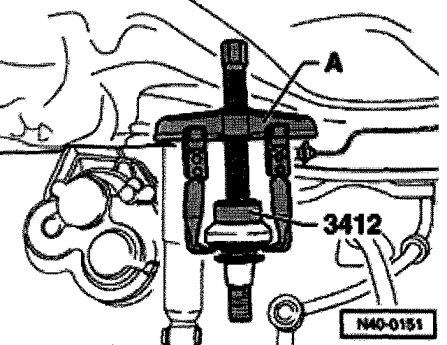 ^ Install puller -A- (standard, e.g. 204/2 Kukko using tension bracket) as shown in illustration and press out joint.