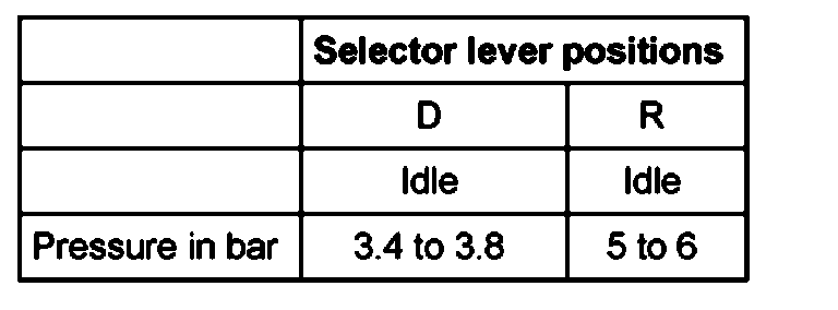 Main pressure specifications at idle