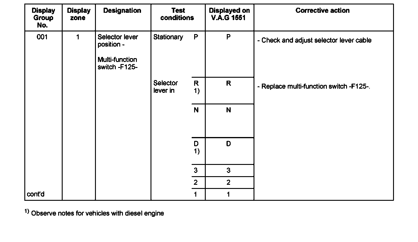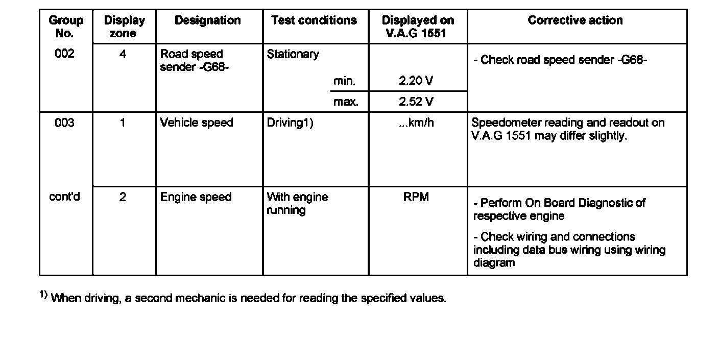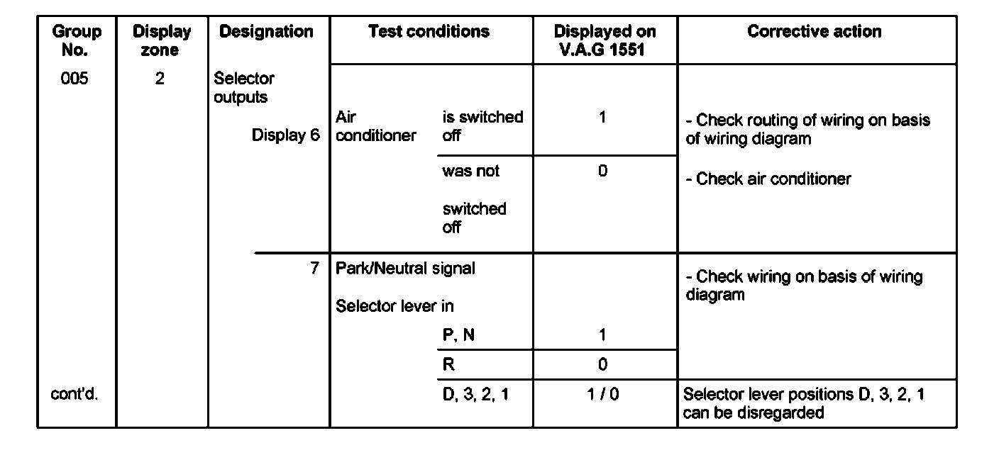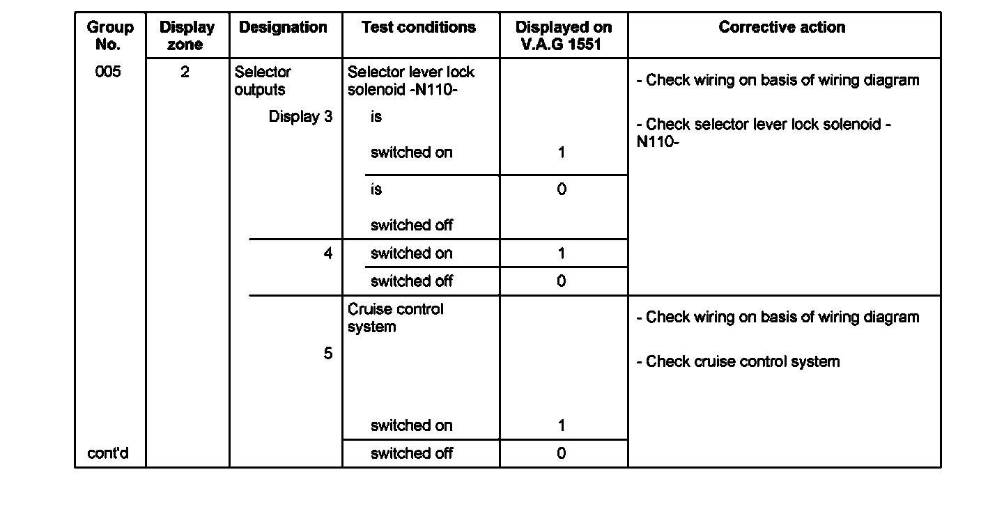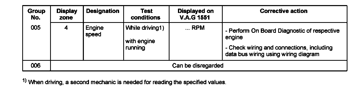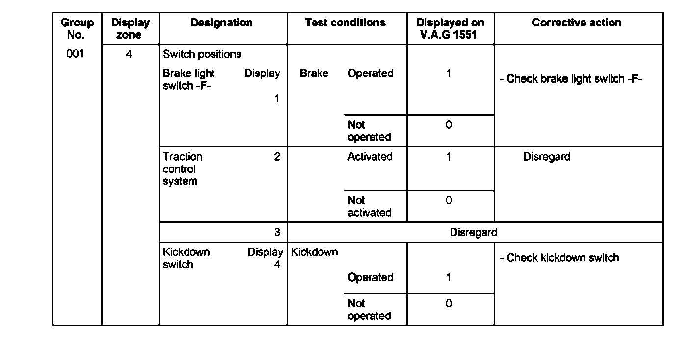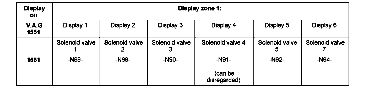 2)V.A.G. 1551 must always show the same number "1" or "0" in displays 1 and 2. Disregard on vehicles with data bus!
