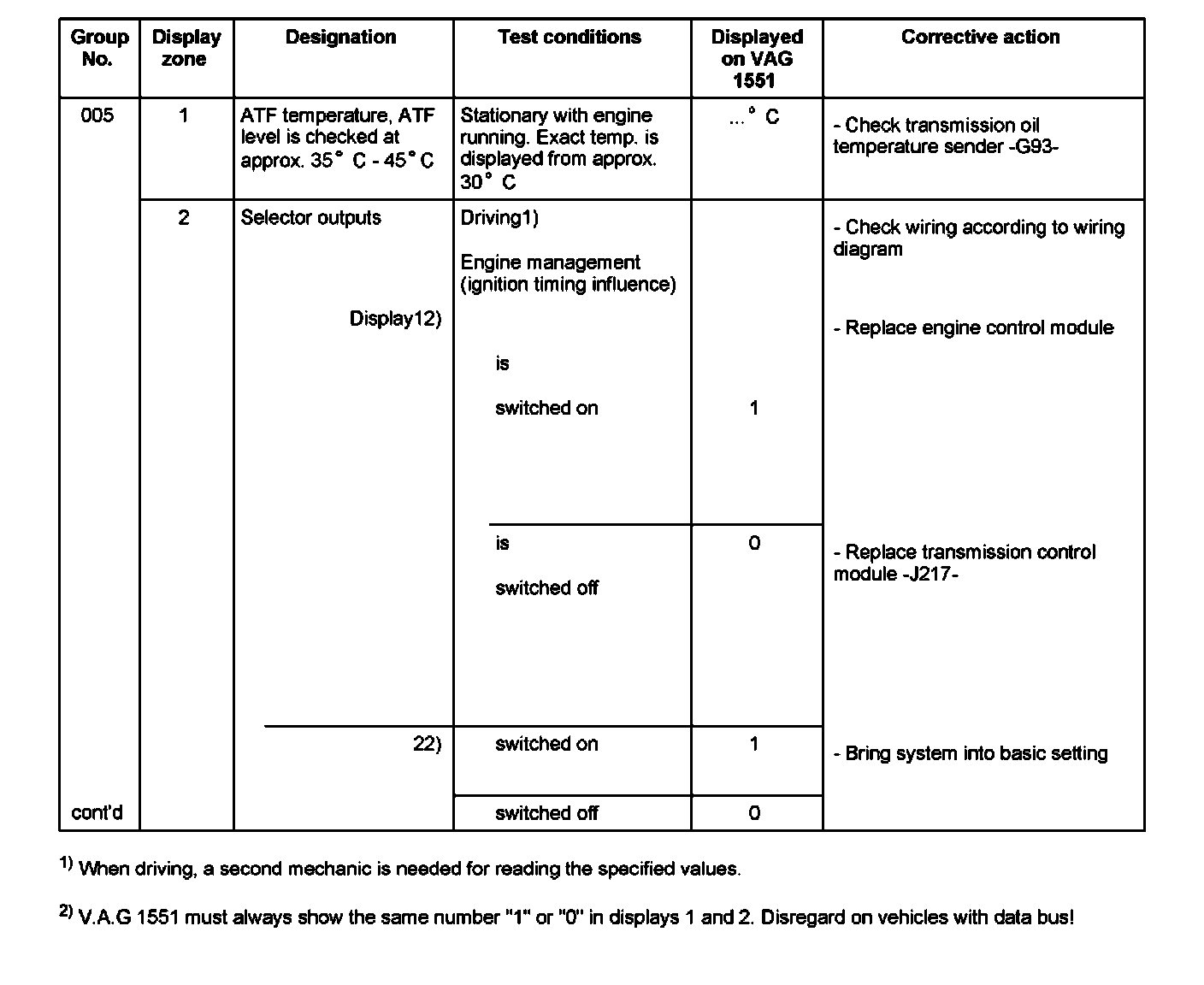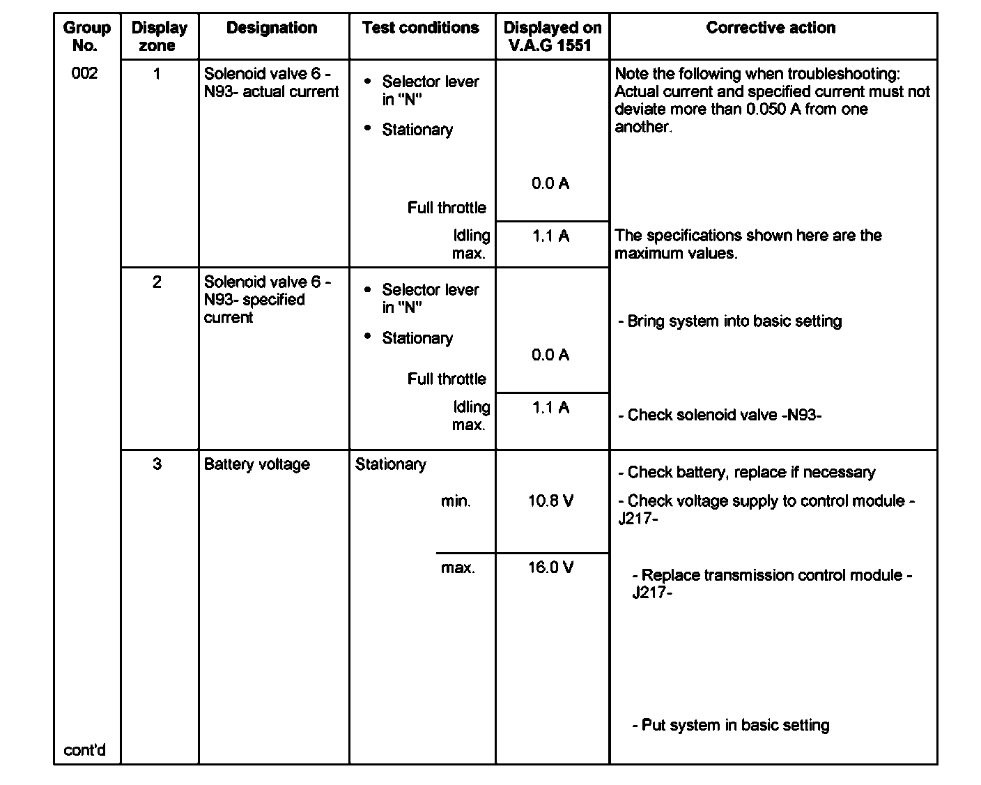 ^ The solenoid valves -N92- and -N94- are valves which ensure a smooth gear shift and are only activated during gear shifts and displayed in zones 5 and 6. They can show "0" or "1" depending on driving situation.