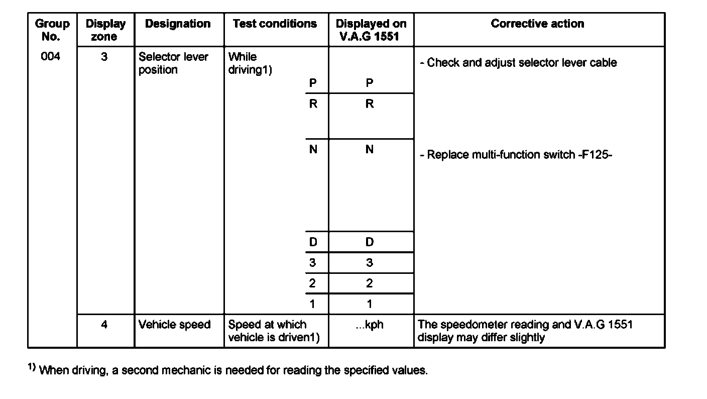 1)While driving with gears selected a second mechanic is required for reading the specified values.