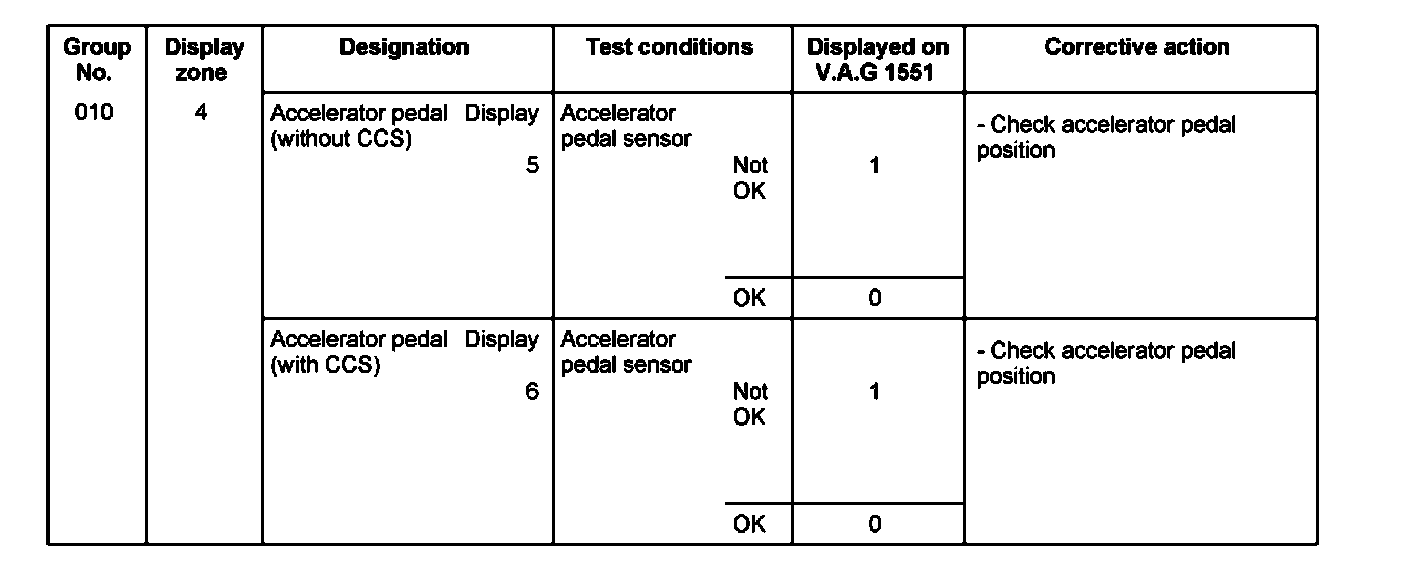 ^ V.A.G 1551 display zone 1 has 6 characters (0000 00) and is read as follows: