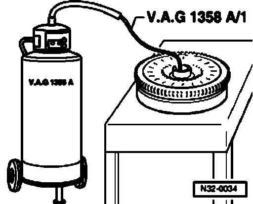 ^ Extract ATF from torque converter using VAG 1358 A and probe VAG 1358 A/1.